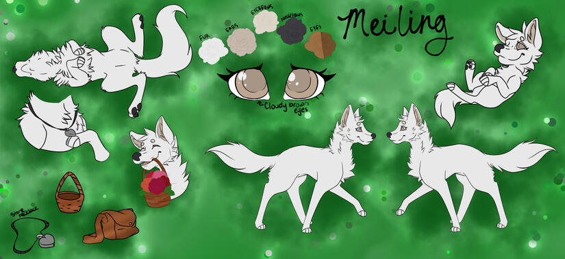 Meiling was born into Riverstead to two tundra wolf mixes by the names of Yingtai and Sultaan, alongside three siblings. Sultaan was a respected fisherman within the town, skilled in his craft and making enough coin to live steadily. He was renowned for his stern but caring nature, something that had always caught the she-wolf's attention. Yingtai was a charter but unlike Sultaan, she was incredibly inexperienced and frequently ran into issues throughout her duties. But she was incredibly sweet and daring, a bad individual in no way whatsoever. Getting lost and being unprepared for extra lengthy trips across the seas were the norm for Yingtai. For the longest time, the female never faced any life-changing consequences for all the things that seemed to go wrong. It all miraculously worked itself out in some way. That was until she became Sultaan's wife and was pregnant with her first litter, making her well-being crucial to that of her pups.Stubbornly throughout her time carrying the litter, Ying refused to stop working, even when her due date was just around the corner. And on one trip in particular across the stormy waters of Nevriande, the she-wolf's ship was violently thrown off course and her only crewmate was thrown overboard. After managing to survive the initial storm, Yingtai's ship crashed into an island a day later. From that point onward, survival became a major struggle for the expecting mother as she was already injured and unable to hunt. Days would go by as she could do nothing but starve, and only to make matters worse, she went into labor early. Hours of unassisted strained delivery later left the canine with five puppies, all alive but just barely. Three girls and two boys. The smallest of the litter happened to be a nearly all-snow-white girl, whom Yingtai named Meiling. Whilst the boys were named Aiguo and Finnegan and the other two girls were named Tao and Yuxuan.However, for the new family, only a few difficult days would pass before a rescue crew managed to find Yingtai before it was too late and bring her and her kids back to Riverstead. Sultaan was more than elated to be reunited with his wife and meet his newborn pups but life didn't get easier from that point onward. The growing pups ran into a multitude of issues due to being premature, the most drastic of which would be the vision loss observed in Meiling. As soon as their eyes were open, her corneas were noticeably cloudy and she struggled to respond to visual cues. Making the way she and her family alike go through life differently. By her parents' logic, the young wolf was expected to be accompanied by someone at all times and where she could go was very limited. It was done all in the name of her safety, but in turn, she was sheltered from most experiences that were normal parts of life.Meiling found it to be very unfair and soon began to feel like her family kept her trapped, so much so that she plotted to run away. She knew nothing about life or the true dangers of the world, but she desperately wanted to learn. At just a year old, the she-wolf made her great escape successfully and was surviving on her own on the outskirts of town. But surviving was all that she did, and just barely as she was virtually defenseless being so young. Luckily for Mei at the time, she'd crossed paths with a male Argentinian mastiff by the name of Dewi who was barely older than herself. Dewi presented himself as charming and the gullible young wolf was quick to begin living with him. With his help, she was no longer struggling, but physically that is. As early on in their relationship, the male demonstrated his preference to take care of Meiling in an overbearing manner.She was given even less freedom than what her parents gave her, and it sparked tension between the pair. The she-wolf never let the fights come to blows, but they were still quite loud and destructive. Meiling never hesitated to voice her mind in telling the male that she didn't need to be watched over like a child, but it always seemed to fall upon deaf ears. She was capable of doing so many things and yet Dewi acted like she couldn't. The stress he caused made Mei feel like she was going to lose her mind, and their relationship lasted seven months. It was constantly back and forth until the young female made the choice to run away again and leave yet another life behind. Like the first time, she did face hardship but now being a bit wiser it wasn't as bad as it could've been. And fortunately for the she-wolf, she ran into many travelers.Each of them kindly gave her directions to the capital of Skyheimr when asked where she could begin her life. The trip there wasn't easy in the slightest, as Meiling was dirty, starving, and injured, but she made it. There, she was able to finally see the joys of life without anyone's restraints. She was able to have discoveries and real friends and explore to her heart's content. Meiling soaked up every ounce of information she was given and would eventually take up a job as one of the city's medics. Soon, the female was able to make a living and better adjust to living within the crowded city, but it went without saying that she still hadn't seen much of the world. She's still quite young and must stick to paths easily traversable for someone such as herself, although Mei believes it's time to live with true freedom.
